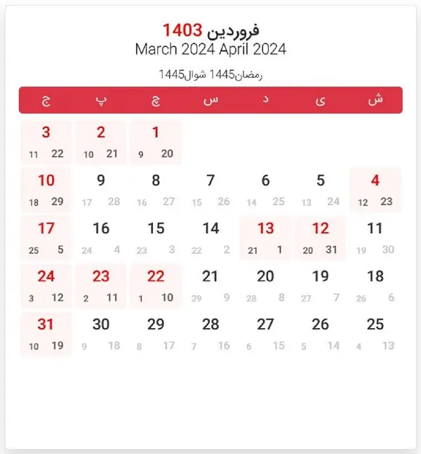 تاریخ آغاز ماه رمضان ۱۴۰۳ در تقویم هجری شمسی